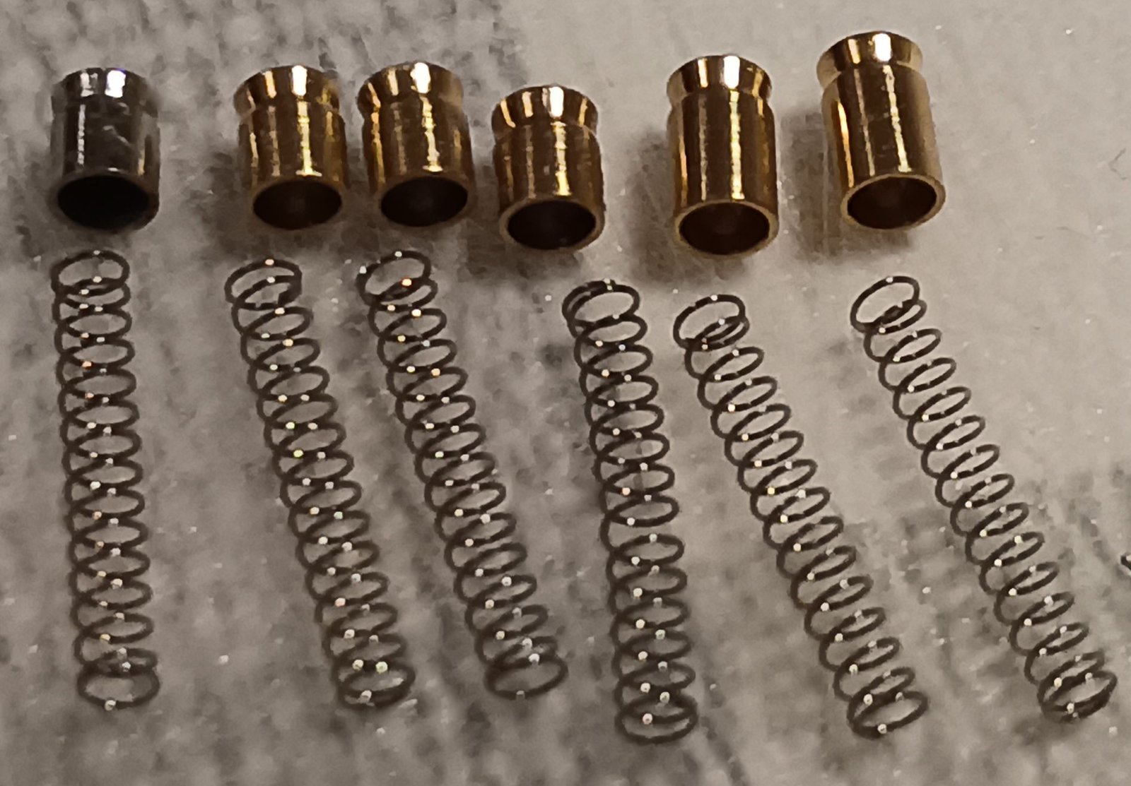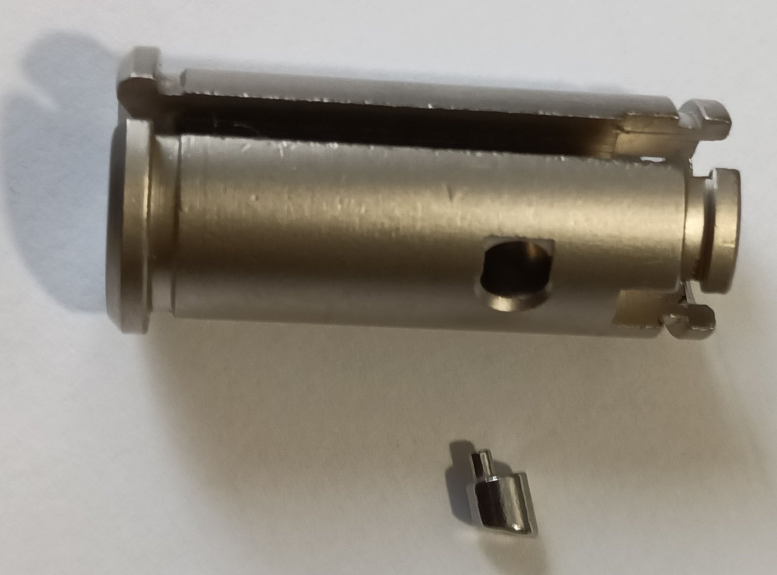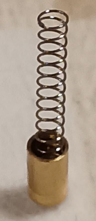 Kontr-pino spyruoklė įstatyta į jį, nes plieninis stypas užima dalį vietos cilindro korpuso apatinėje dalyje.