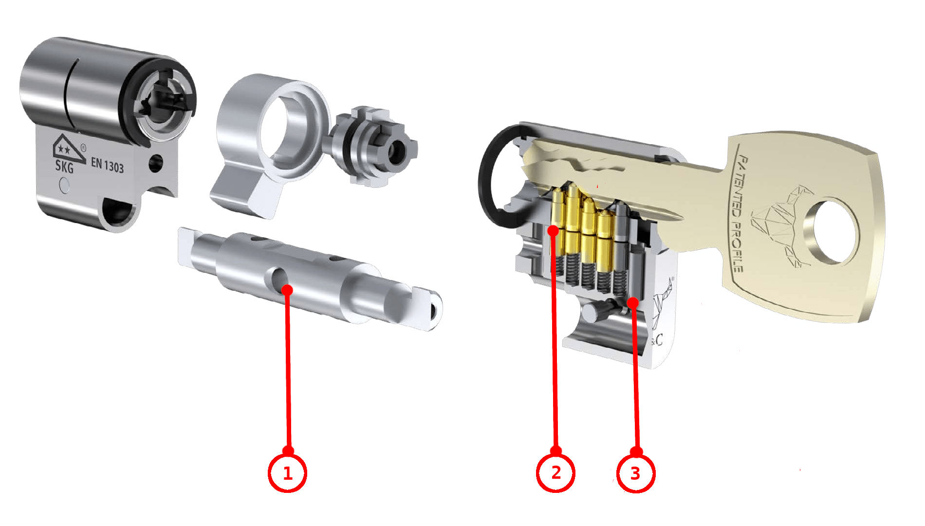 Cilindrai suteikia bazinę apsaugą nuo jėgos atakų, visrakčių, „bumping“ metodo ir gręžimo.