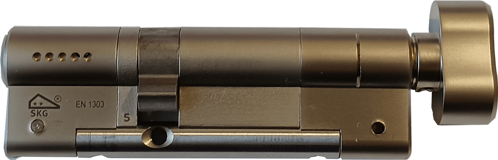 , integruotas cilindro korpuse. Be to, pirmasis pinas ir kontrpinas yra pagaminti iš plieno, kas padidina atsparumą gręžimui.