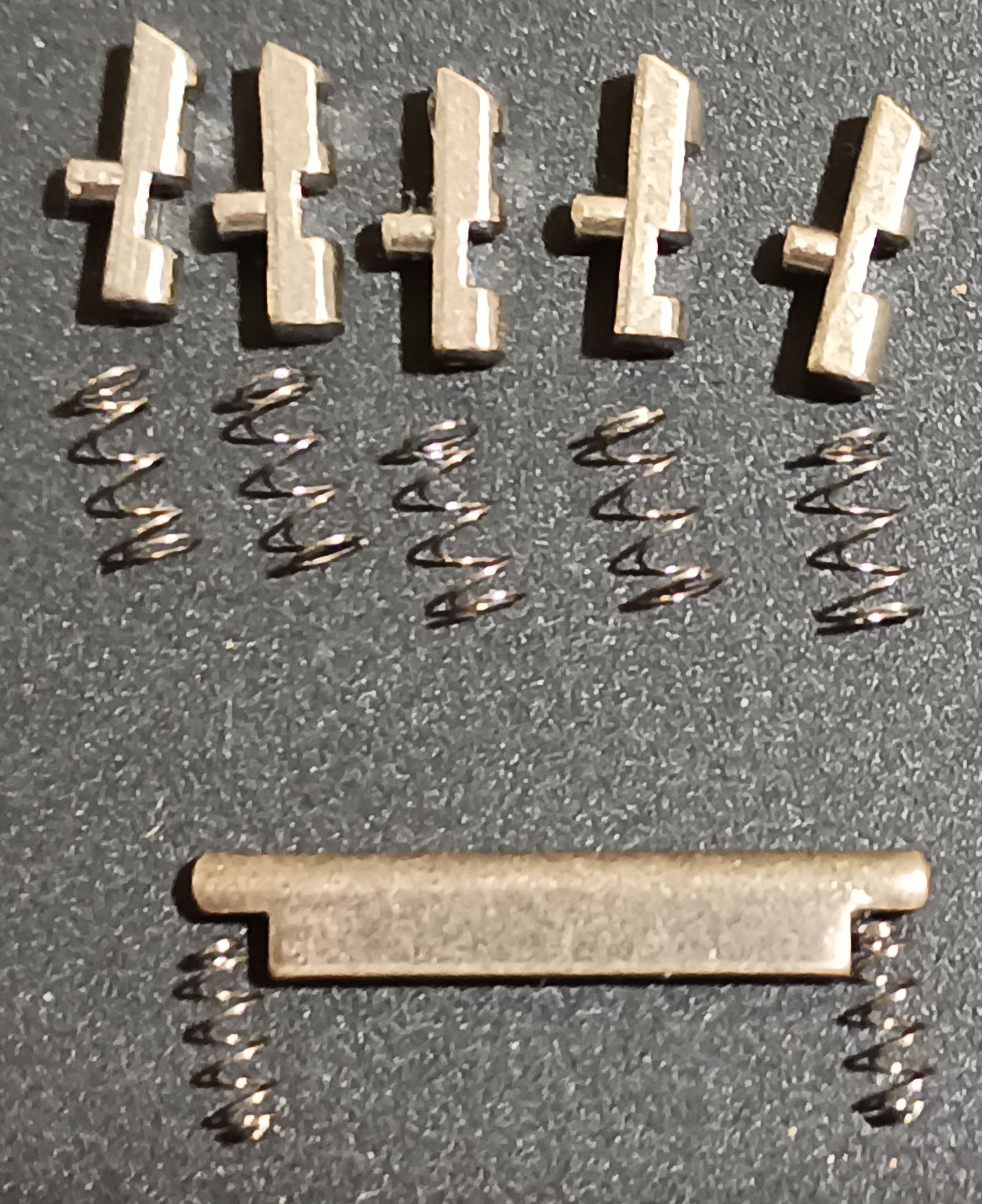 Mechanizme naudojamos dvi kodavimo sistemos: 6 klasikiniai spyruokliniai pinai, ir 5 slankikliai (sliders) (3)