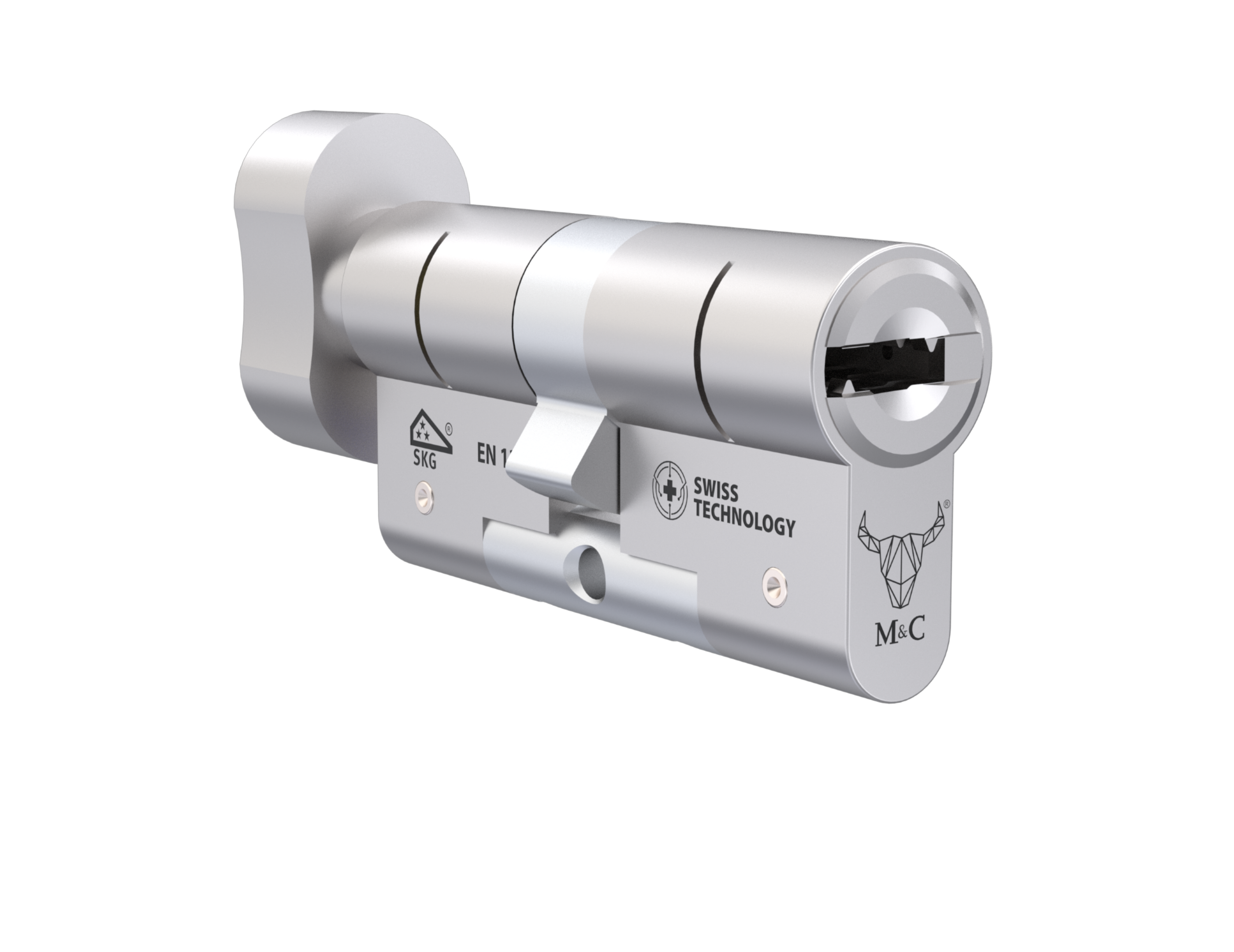 Все модели цилиндров M&C оснащёны аварийной функцией, повышающей безопасность и удобство в повседневном использовании — цилиндр ключ/ключ можно открыть даже в том случае, если с противоположной стороны вставлен и даже повернут ключ.