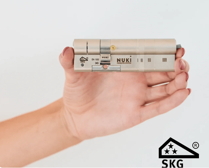 Разумеется, вы всегда можете открыть свою дверь и старым, проверенным методом — обычным ключом. С NUKI поставляются цилиндры M&C — сертифицированные по строгому стандарту взломостойкости SKG и обеспечивающие контроль за копированием ключей.