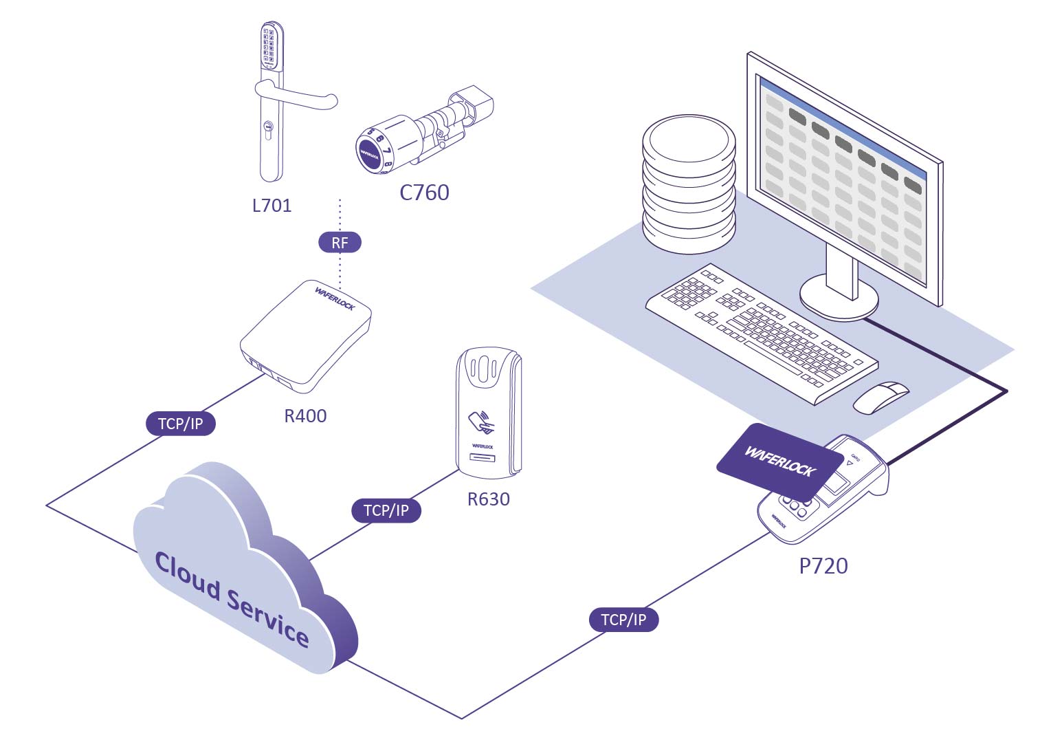 С помощью дополнительного устройства — Gateway R400 — можно управлять замком L701 дистанционно. Используется то же самое приложение Waferkey, но телефону необходим только доступ в интернет.