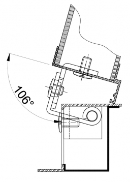 Standartinio vyrio atsidarymo kampas yra 106 laipsniai.